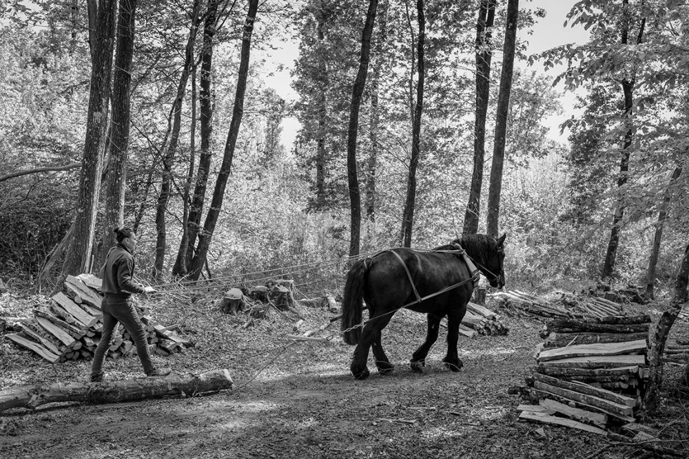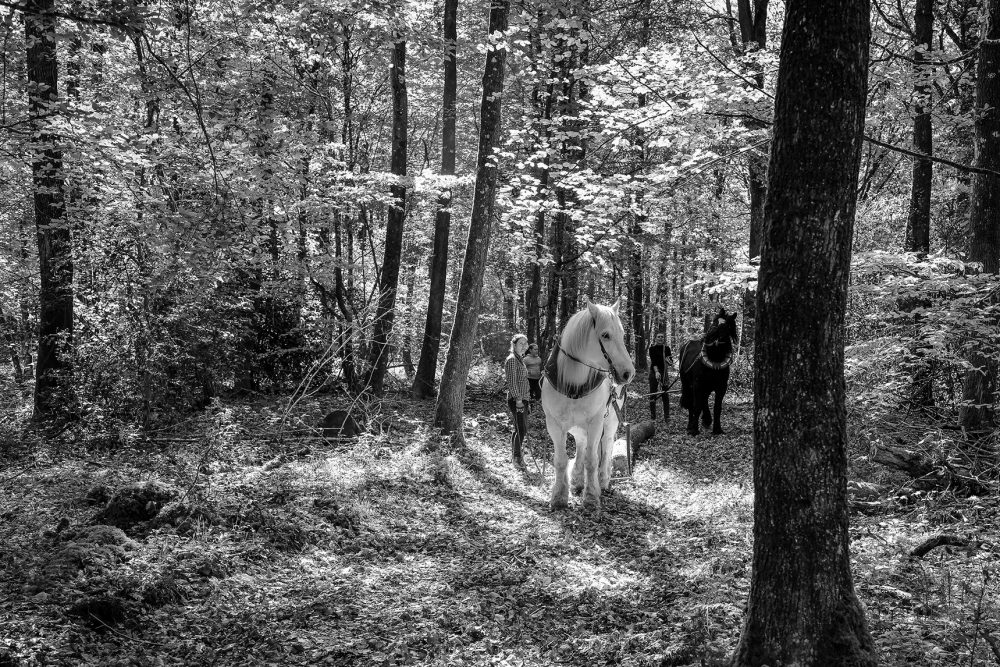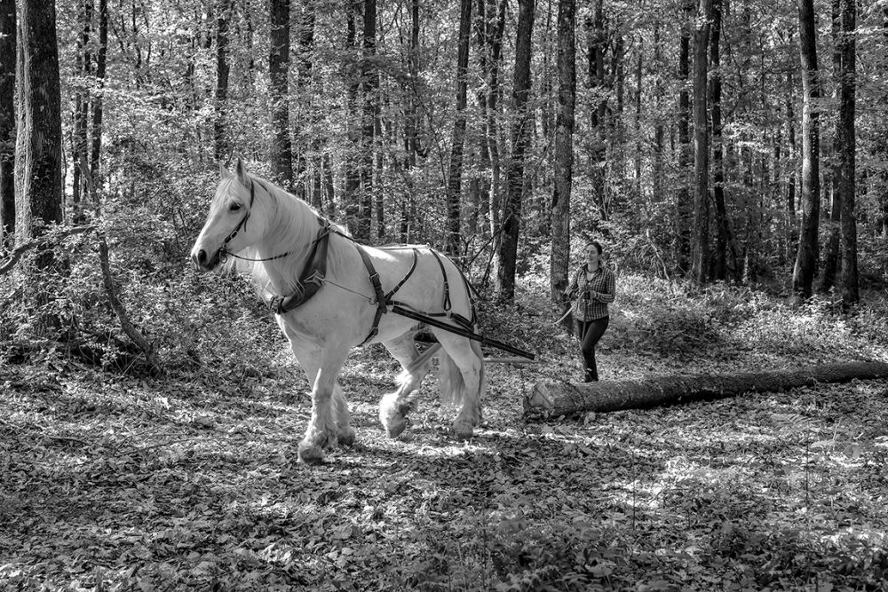 Débardage avec les percherons de Lysiane et Estelle. 04/2026, Loir & Cher.